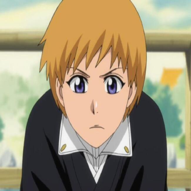 This is a picture of Kotetsu Kiyone, a fictional character who is very open-minded, excitable and has an uncompromising attitude to others in the manga Bleach. Kiyone is petite, with dark blonde hair and gray eyes. She wears the standard Shinigami uniform with a white shirt collar sticking out from the top and white gloves.