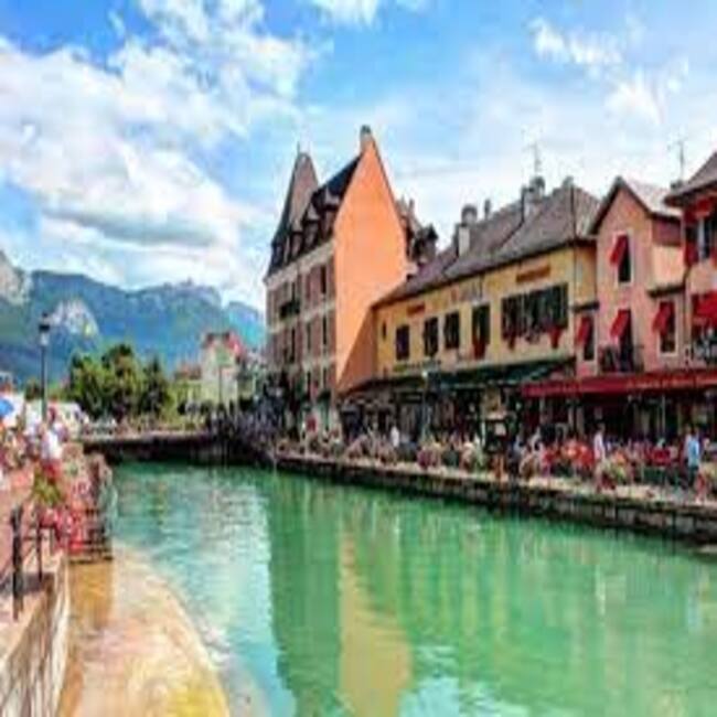 This is Annecy, surrounded by the Alps, located about 300km southeast of Paris.